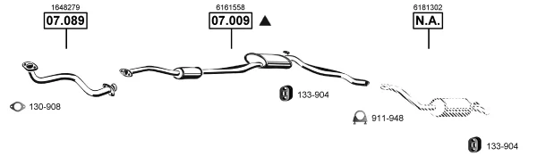 FORD SIERRA II Turnier (BNG) 2.3 D - Výfukový systém - kompletní od 1/1987 do 2/1993, 2304 ccm, 49 kW, 67 hp, YTR, kombi