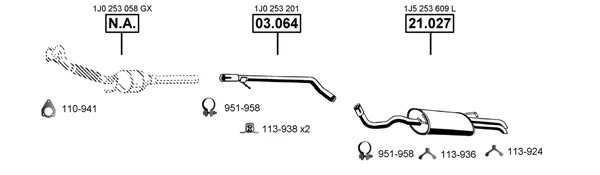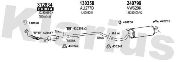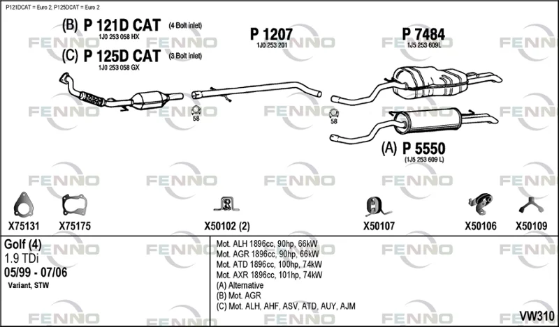 VW GOLF IV Variant (1J5) 1.9 TDI - Výfukový systém - kompletní od 9/2000 do 6/2006, 1896 ccm, 74 kW, 101 hp, ATD, AXR, kombi