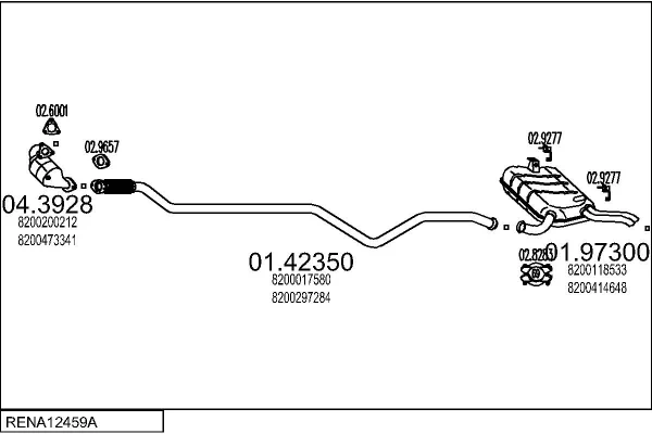 RENAULT LAGUNA II Grandtour (KG0/1_) 1.9 dCi (KG0G) - Výfukový systém - kompletní od 3/2001 do 9/2007, 1870 ccm, 88 kW, 120 hp, F9Q 670, F9Q 674, F9Q 750, kombi