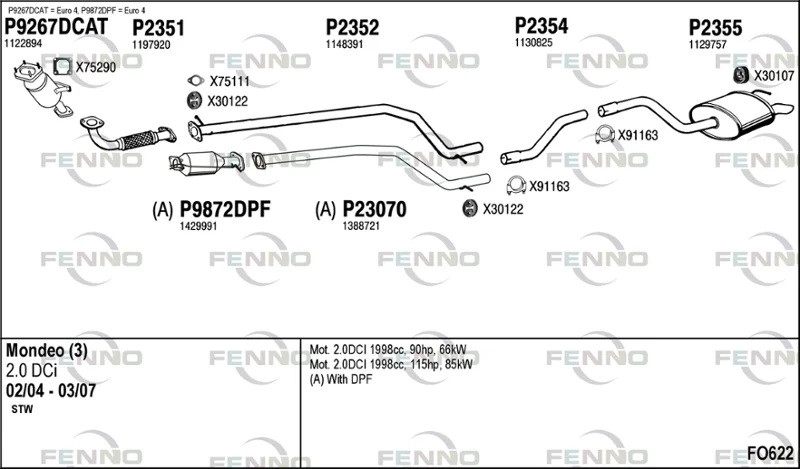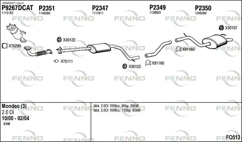 FORD MONDEO III Turnier (BWY) 2.0 16V DI / TDDi / TDCi - Výfukový systém - kompletní od 10/2000 do 3/2007, 1998 ccm, 66 kW, 90 hp, D5BA, SDBA, kombi