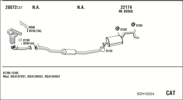 SUZUKI IGNIS I (FH) 1.3 4WD (RG413) - Výfukový systém - kompletní od 10/2000 do 9/2003, 1328 ccm, 61 kW, 83 hp, M13A, Šikmá zadní část