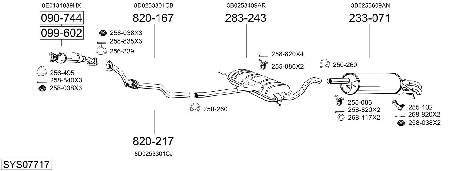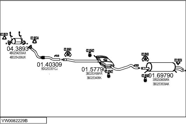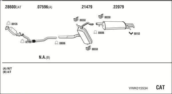 VW PASSAT B5.5 Variant (3B6) 1.8 T 20V - Výfukový systém - kompletní od 11/2000 do 5/2005, 1781 ccm, 110 kW, 150 hp, AWT, kombi