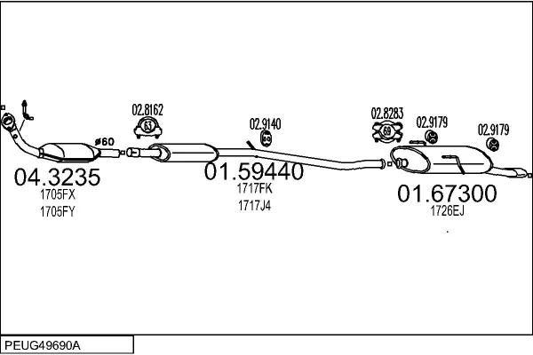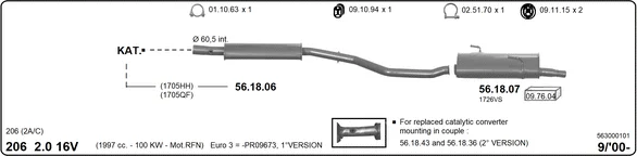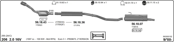 PEUGEOT 206 Šikmá zadní část (2A/C) 2.0 S16 - Výfukový systém - kompletní od 6/1999 do 12/2007, 1997 ccm, 100 kW, 136 hp, RFN (EW10J4), Šikmá zadní část
