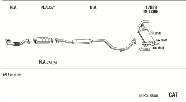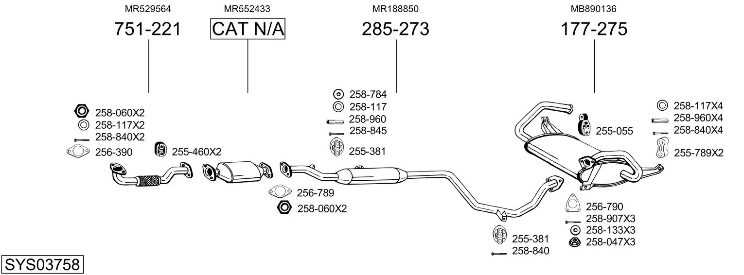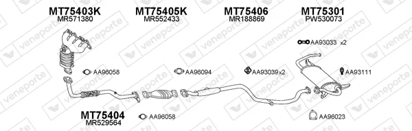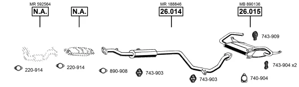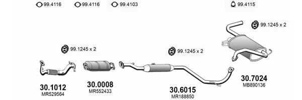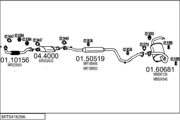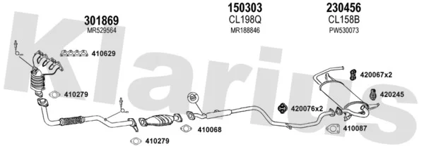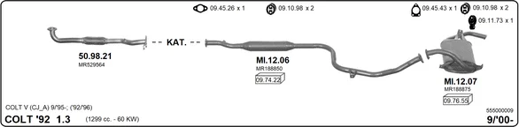 MITSUBISHI COLT V (CJ_, CP_) 1300 (CJ1A) - Výfukový systém - kompletní od 6/2000 do 9/2003, 1299 ccm, 60 kW, 82 hp, 4G13 (16V), Šikmá zadní část