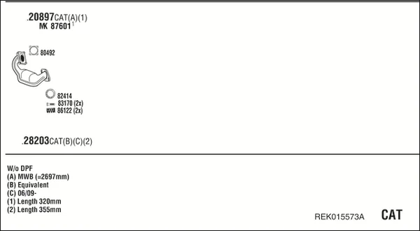 Druh katalyzátoru | pro vozidla bez filtru pevných částic |
