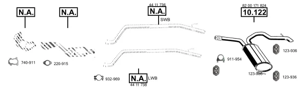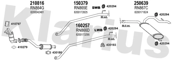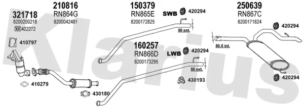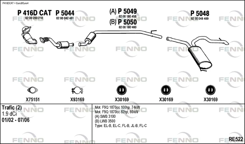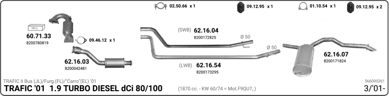 RENAULT TRAFIC II Krabice (FL) 1.9 dCi 100 (FL0C, FL0K, FL0B) - Výfukový systém - kompletní od 3/2001 do 10/2006, 1870 ccm, 74 kW, 101 hp, F9Q 760, Krabice