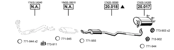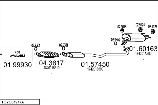 TOYOTA COROLLA Compact (_E10_) 1.8 GT (AE102_, AE102R) - Výfukový systém - kompletní od 11/1992 do 5/1995, 1762 ccm, 86 kW, 117 hp, 7A-FE, Šikmá zadní část