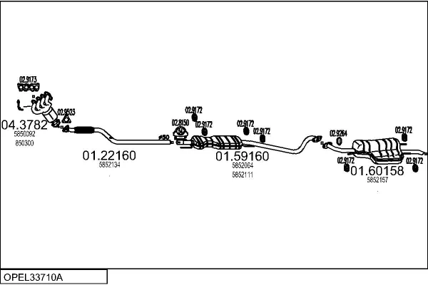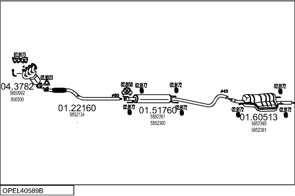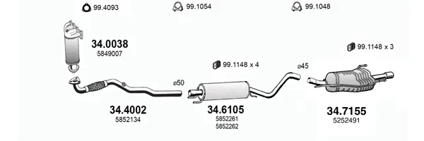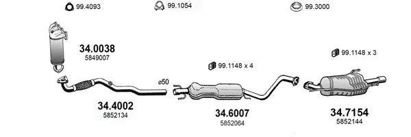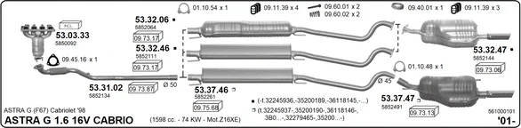 OPEL ASTRA G Kabriolet (T98) 1.6 16V (F67) - Výfukový systém - kompletní od 3/2001 do 10/2005, 1598 ccm, 74 kW, 101 hp, Z 16 XE, Kabriolet