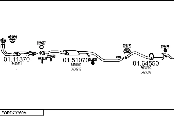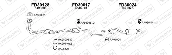 FORD ESCORT V Turnier (ANL) 1.3 - Výfukový systém - kompletní od 9/1991 do 1/1995, 1299 ccm, 44 kW, 60 hp, J4B, J6A, kombi