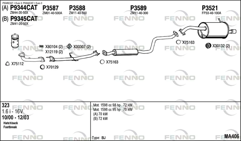 MAZDA 323 F VI Šikmá zadní část (BJ) 1.6 (BJ10M) - Výfukový systém - kompletní od 1/2001 do 5/2004, 1598 ccm, 72 kW, 98 hp, ZM, Šikmá zadní část