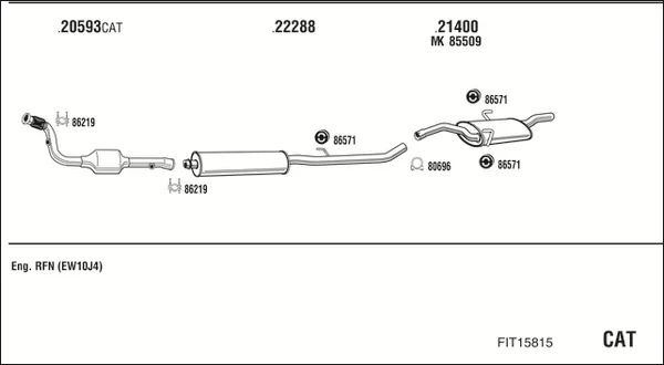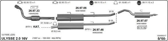 FIAT ULYSSE (220_) 2.0 16V (220AQ5) - Výfukový systém - kompletní od 9/2000 do 8/2002, 1997 ccm, 100 kW, 136 hp, RFN (EW10J4), velkoprostorová limuzína