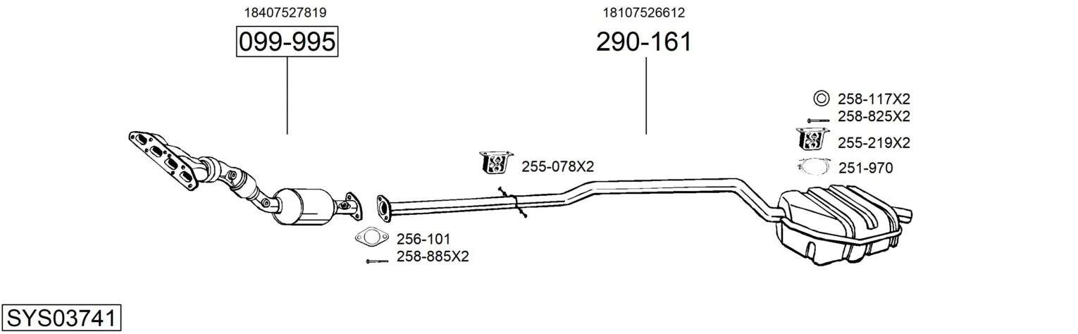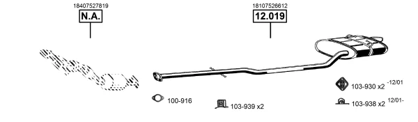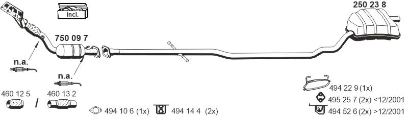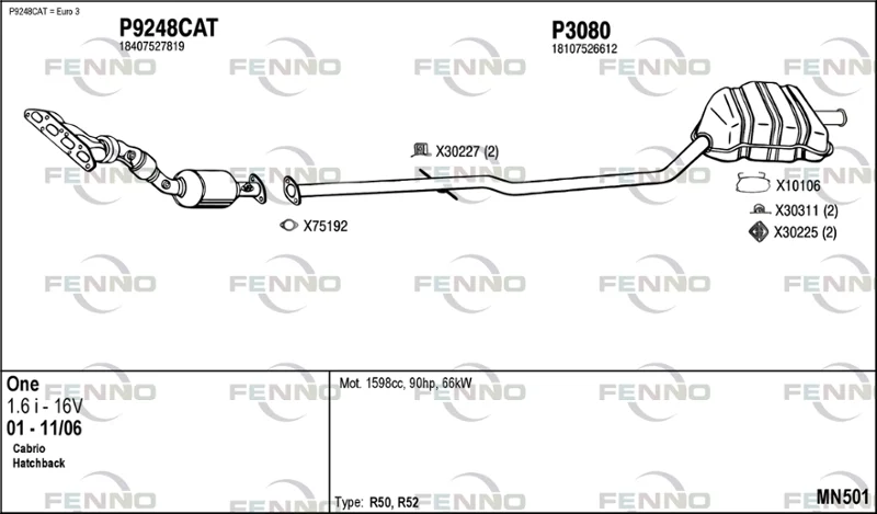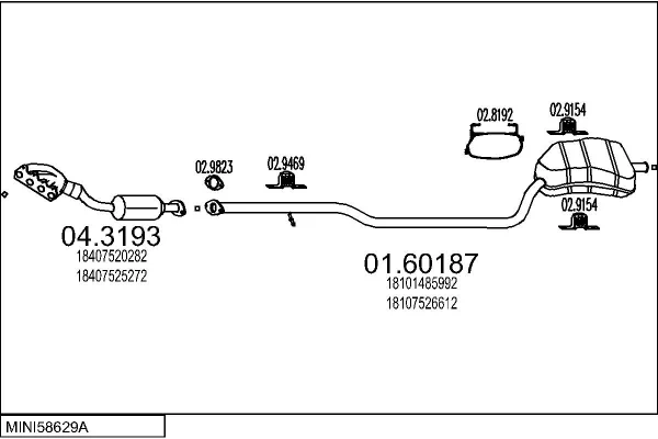 MINI MINI (R50, R53) One - Výfukový systém - kompletní od 6/2001 do 9/2006, 1598 ccm, 66 kW, 90 hp, W10 B16 A, Šikmá zadní část