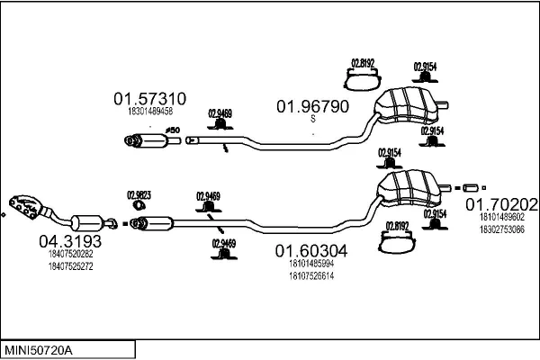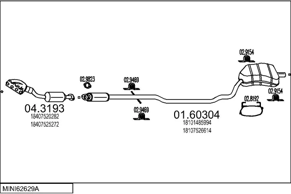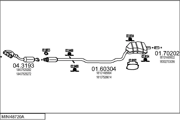 MINI MINI (R50, R53) Cooper - Výfukový systém - kompletní od 6/2001 do 9/2006, 1598 ccm, 85 kW, 116 hp, W10 B16 A, Šikmá zadní část
