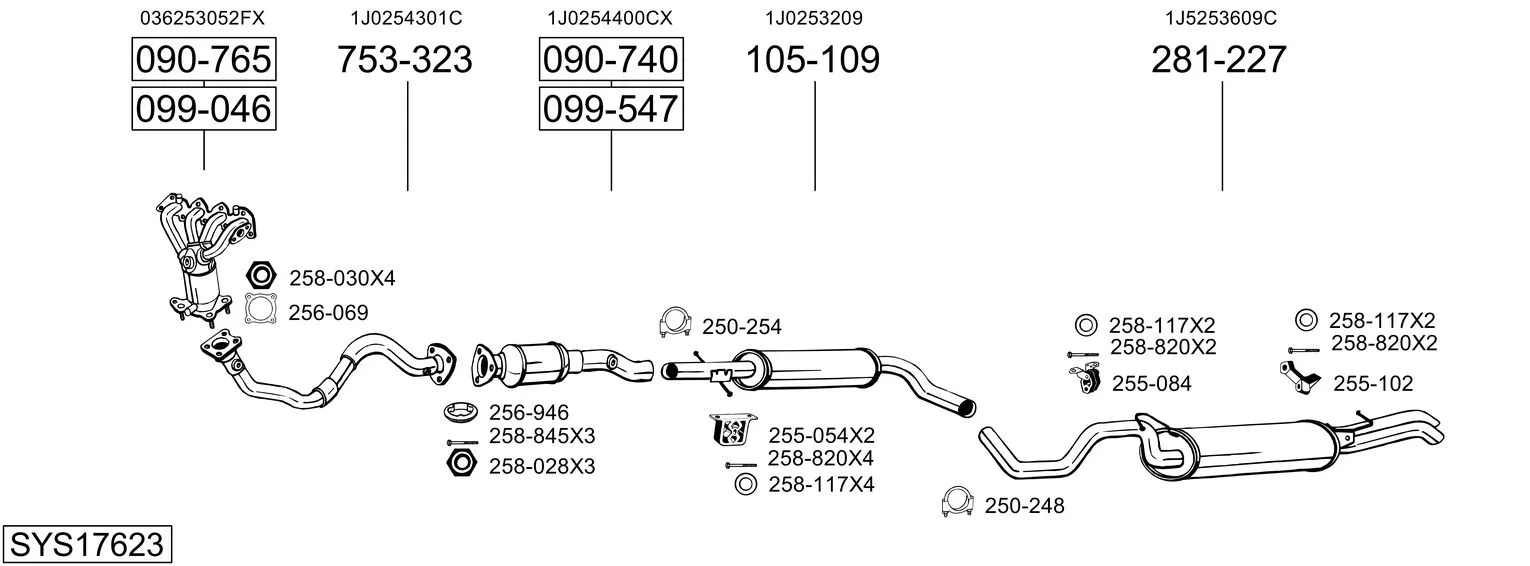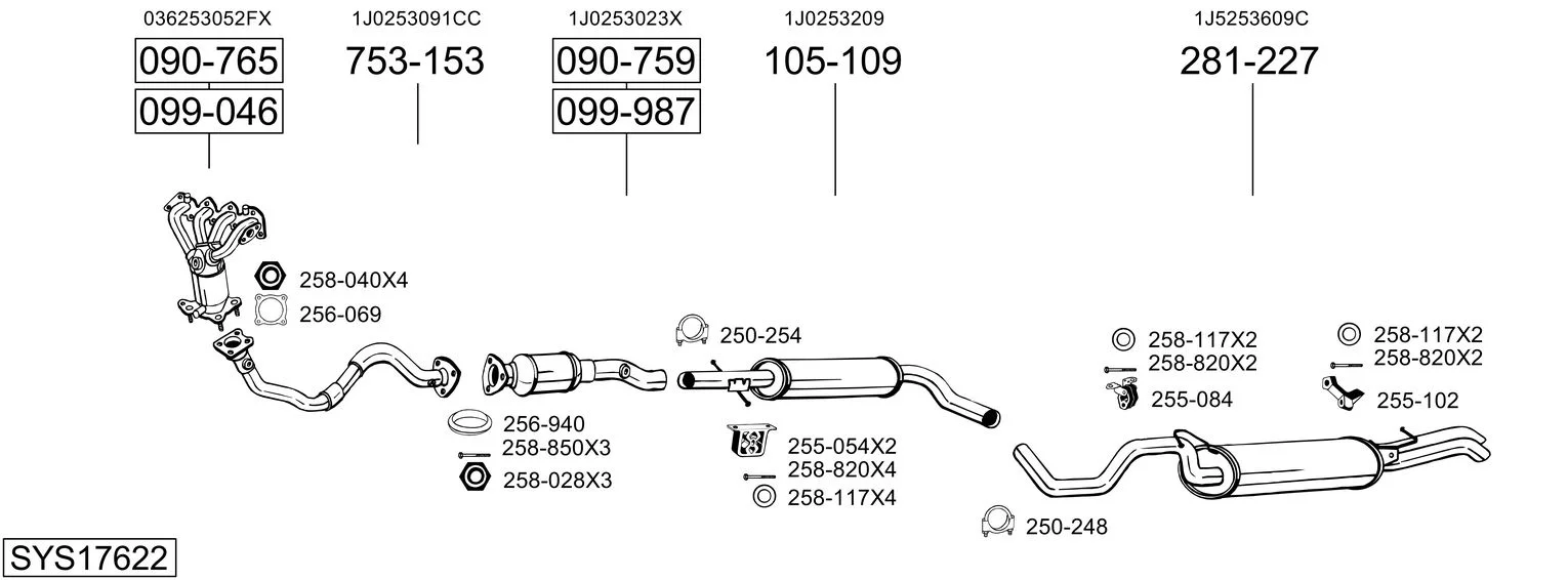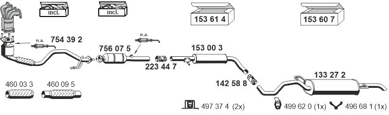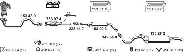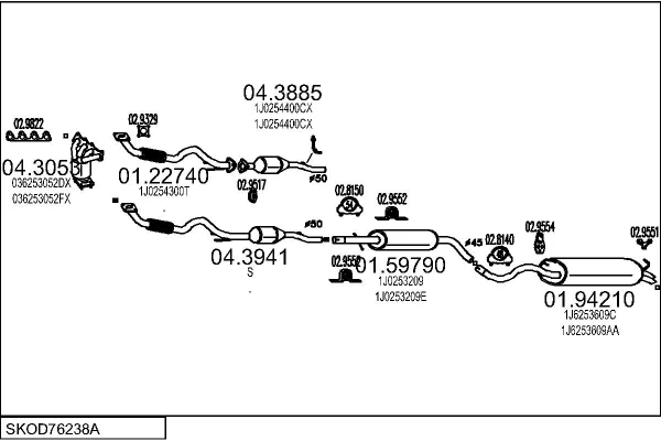 SKODA OCTAVIA I Combi (1U5) 1.4 16V - Výfukový systém - kompletní od 8/2000 do 12/2010, 1390 ccm, 55 kW, 75 hp, AXP, BCA, kombi