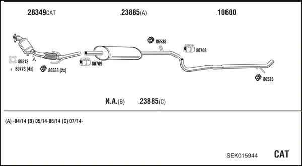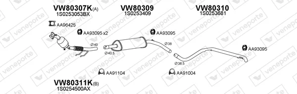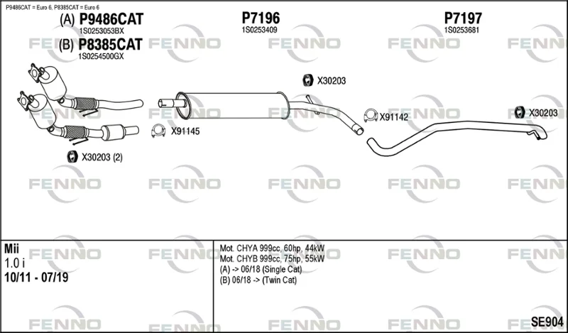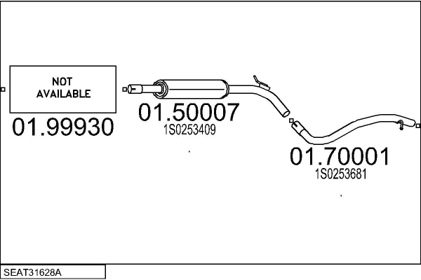 SEAT Mii (KF1, KE1) 1.0 - Výfukový systém - kompletní od 10/2011 do 7/2019, 999 ccm, 55 kW, 75 hp, CHYB, Šikmá zadní část
