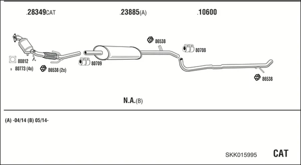 SKODA CITIGO (NF1) 1.0 - Výfukový systém - kompletní od 10/2011 do 8/2019, 999 ccm, 55 kW, 75 hp, CHYB, Šikmá zadní část