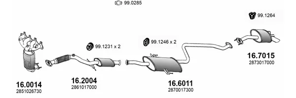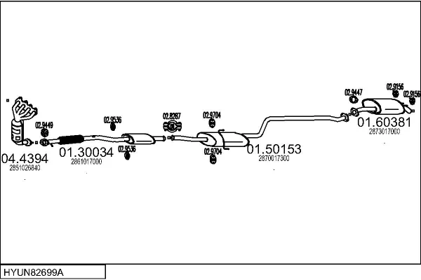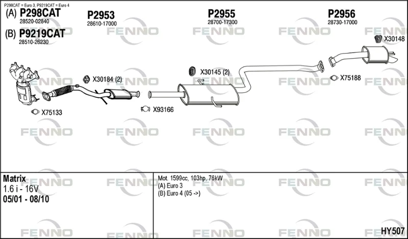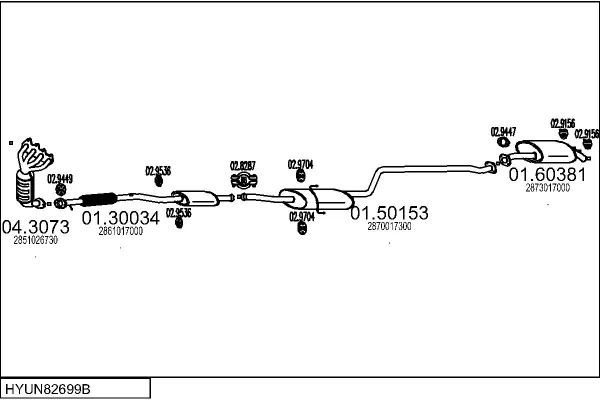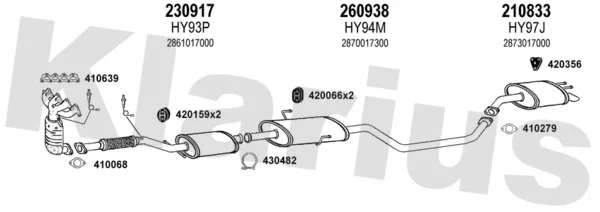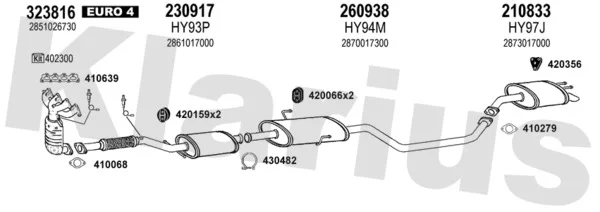 HYUNDAI MATRIX (FC) 1.6 - Výfukový systém - kompletní od 6/2001 do 8/2010, 1599 ccm, 76 kW, 103 hp, G4ED, velkoprostorová limuzína
