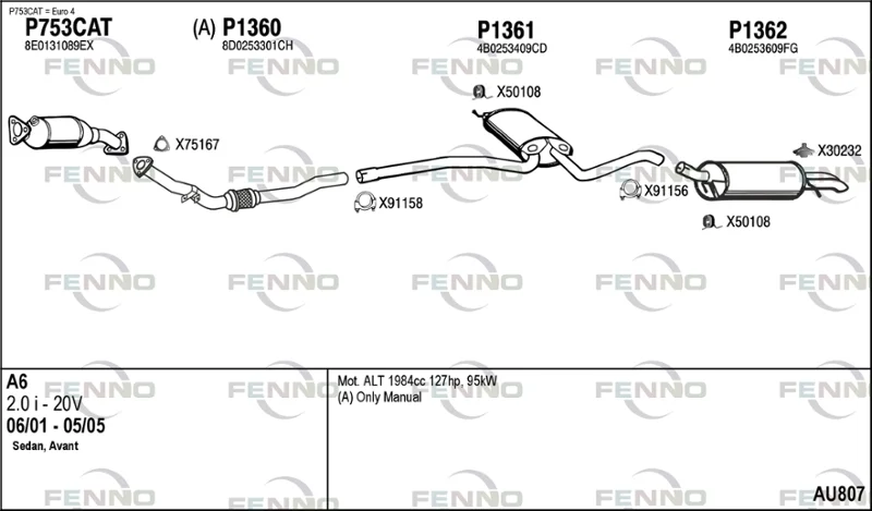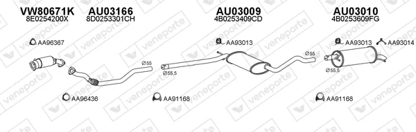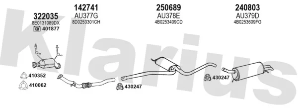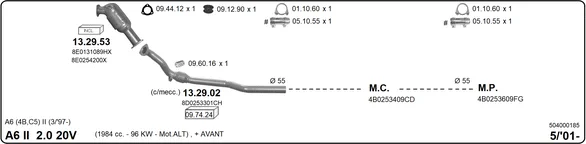 AUDI A6 C5 (4B2, 4B4) 2.0 - Výfukový systém - kompletní od 8/2001 do 1/2005, 1984 ccm, 96 kW, 130 hp, ALT, limuzína