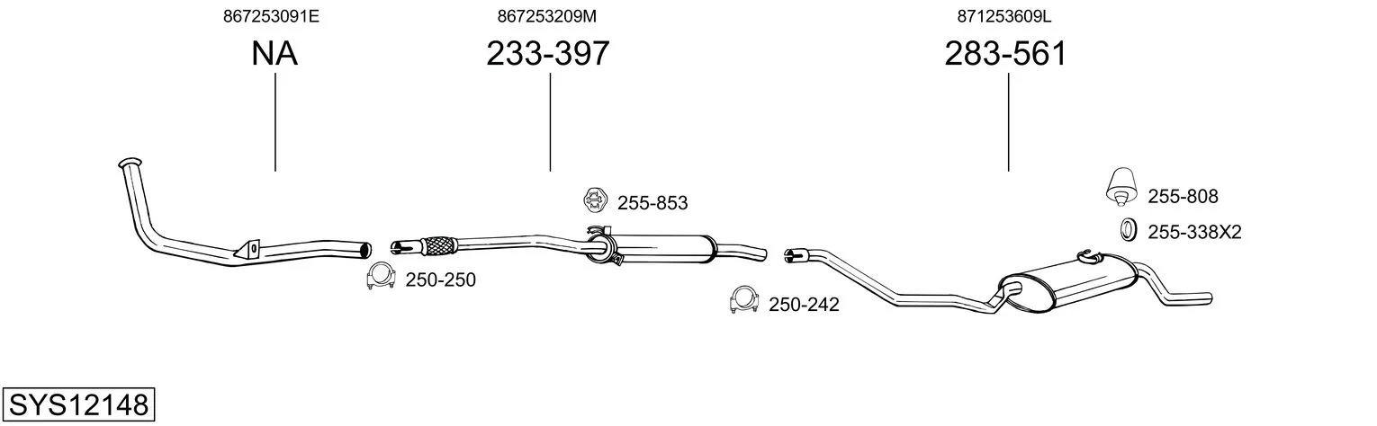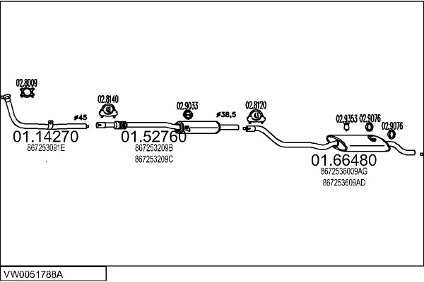 VW POLO II (86C, 80) 1.4 D - Výfukový systém - kompletní od 10/1990 do 9/1994, 1398 ccm, 35 kW, 48 hp, 1W, Šikmá zadní část