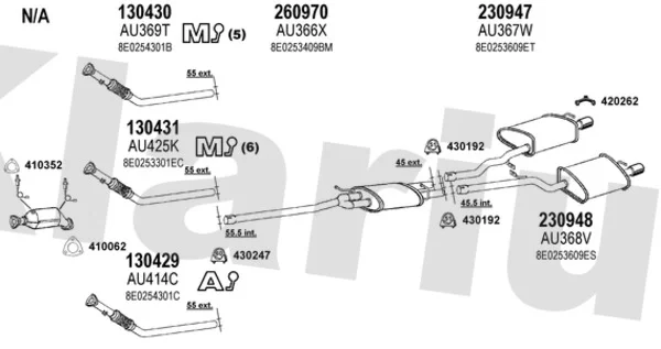 AUDI A4 B6 Avant (8E5) 1.8 T - Výfukový systém - kompletní od 9/2001 do 7/2002, 1781 ccm, 110 kW, 150 hp, AVJ, kombi