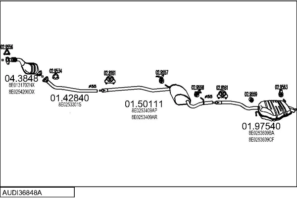 AUDI A4 B6 Avant (8E5) 1.9 TDI - Výfukový systém - kompletní od 9/2001 do 12/2004, 1896 ccm, 96 kW, 130 hp, AVF, AWX, kombi