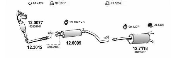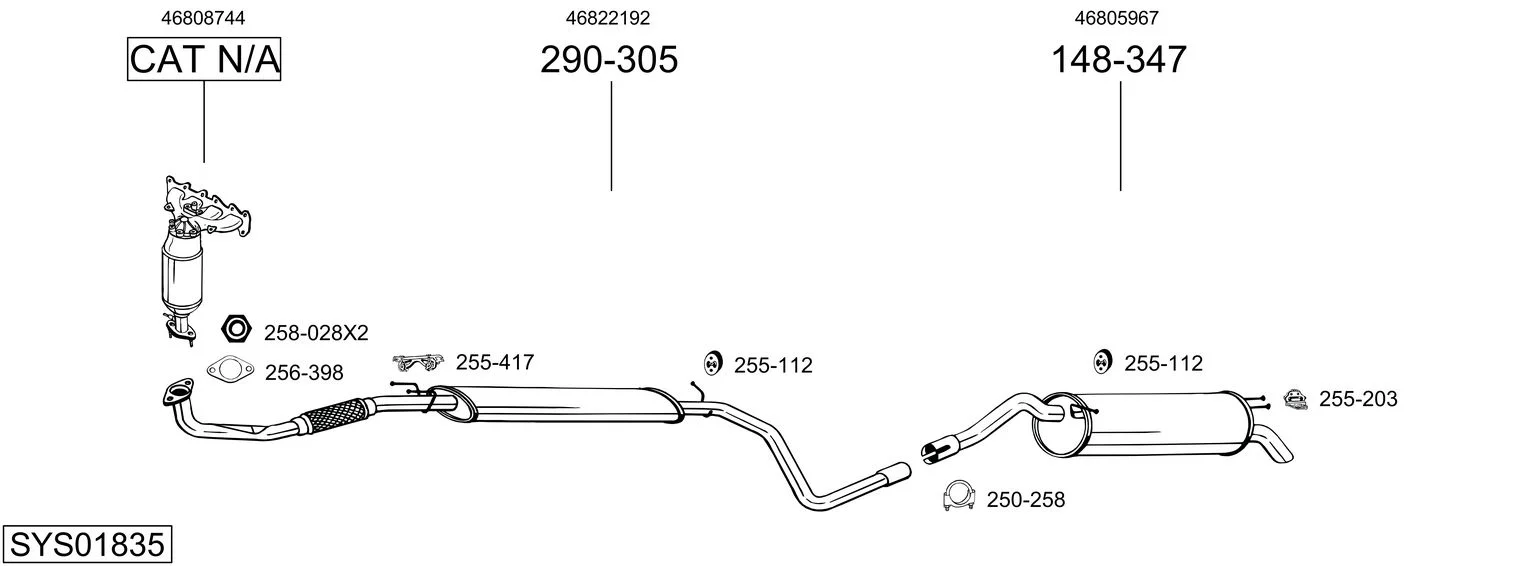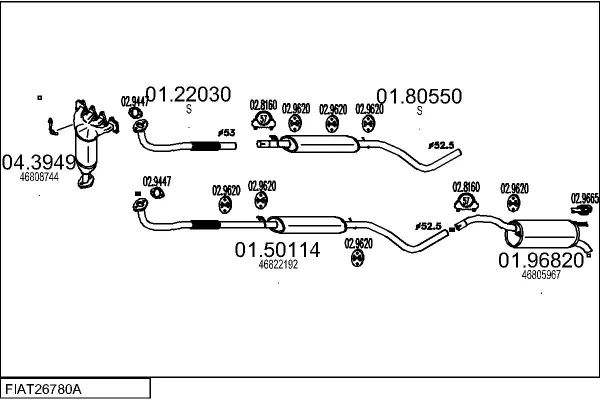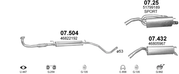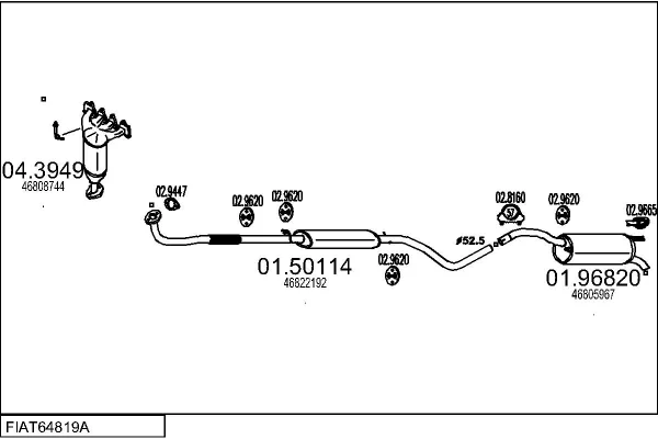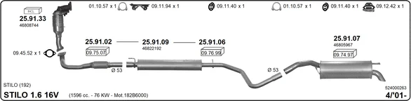 FIAT STILO (192_) 1.6 16V (192_XB1A) - Výfukový systém - kompletní od 10/2001 do 11/2006, 1596 ccm, 76 kW, 103 hp, 182 B6.000, Šikmá zadní část