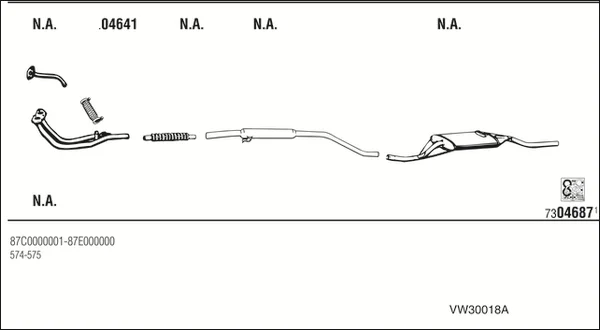 VW DERBY (86C, 80) 1.1 - Výfukový systém - kompletní od 10/1981 do 7/1983, 1093 ccm, 37 kW, 50 hp, HB, limuzína