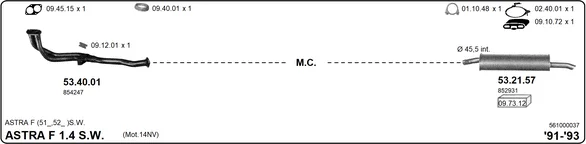OPEL ASTRA F kombi (T92) 1.4 (F35, M35) - Výfukový systém - kompletní od 9/1991 do 9/1993, 1389 ccm, 55 kW, 75 hp, 14 NV, kombi