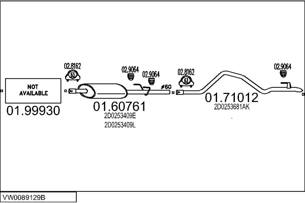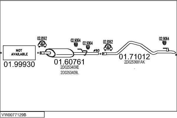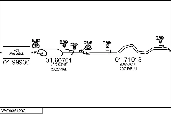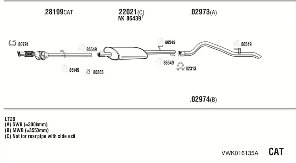 VW LT 28-46 II Krabice (2DA, 2DD, 2DH) 2.5 TDI - Výfukový systém - kompletní od 5/2001 do 7/2006, 2461 ccm, 61 kW, 83 hp, BBE, Krabice