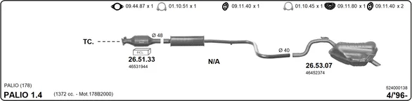 FIAT PALIO (178_, 171_, 371_) 1.4 - Výfukový systém - kompletní od 4/1996 do 10/2002, 1372 ccm, 51 kW, 69 hp, 178 B2.000, Šikmá zadní část