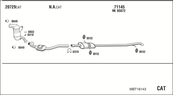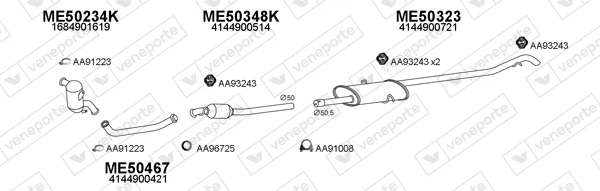 MERCEDES-BENZ VANEO (414) 1.7 CDI (414.700) - Výfukový systém - kompletní od 2/2002 do 7/2005, 1689 ccm, 55 kW, 75 hp, OM 668.914, velkoprostorová limuzína