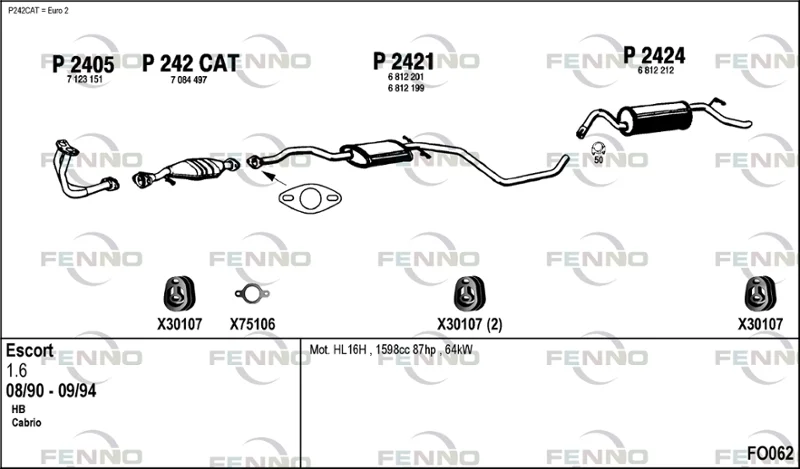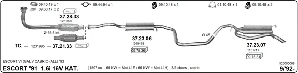 FORD ESCORT V Kabriolet (ALL) 1.6 16V XR3i - Výfukový systém - kompletní od 12/1992 do 1/1995, 1597 ccm, 66 kW, 90 hp, L1E, Kabriolet