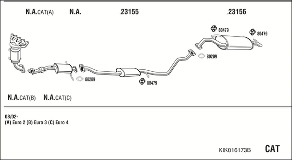 KIA RIO I Šikmá zadní část (DC) 1.5 16V - Výfukový systém - kompletní od 8/2000 do 2/2005, 1493 ccm, 72 kW, 98 hp, A5D, Šikmá zadní část
