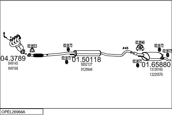 OPEL CORSA C Schránky/šikmá záď (X01) 1.2 16V (F08, W5L) - Výfukový systém - kompletní od 9/2000 do 7/2003, 1199 ccm, 55 kW, 75 hp, Z 12 XE, Schránky/šikmá záď