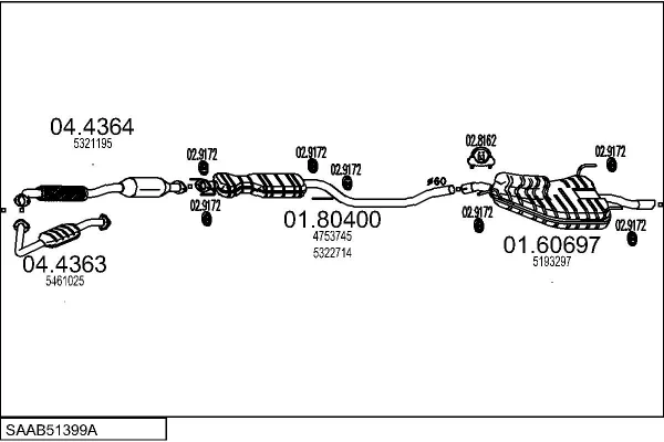SAAB 9-5 (YS3E) 3.0 TiD - Výfukový systém - kompletní od 7/2001 do 8/2005, 2958 ccm, 130 kW, 177 hp, D308L, limuzína