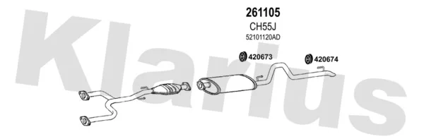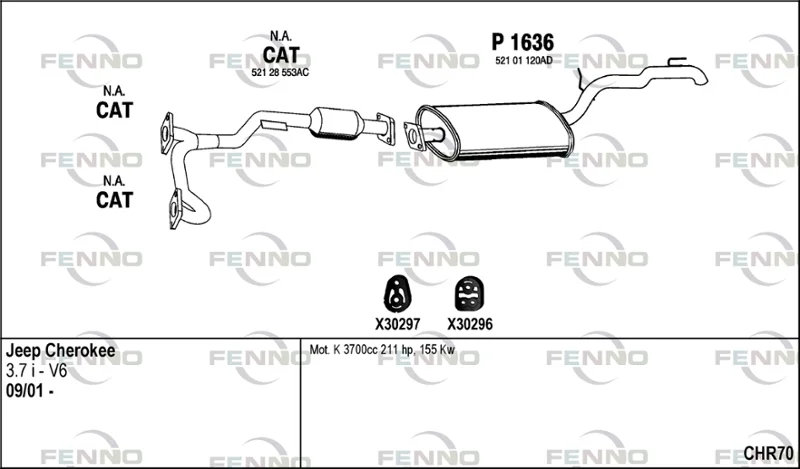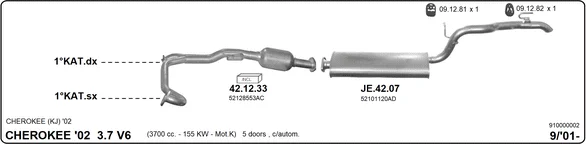 JEEP CHEROKEE (KJ) 3.7 4x4 - Výfukový systém - kompletní od 9/2001 do 1/2008, 3698 ccm, 155 kW, 211 hp, EKG, uzavřený terénní vůz