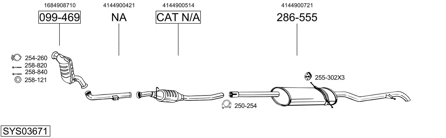 MERCEDES-BENZ VANEO (414) 1.7 CDI (414.700) - Výfukový systém - kompletní od 2/2002 do 7/2005, 1689 ccm, 67 kW, 91 hp, OM 668.914, velkoprostorová limuzína