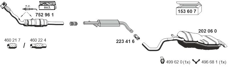 VW GOLF IV (1J1) 1.8 T GTI - Výfukový systém - kompletní od 8/2001 do 6/2005, 1781 ccm, 132 kW, 180 hp, AUQ, AWP, BEK, Šikmá zadní část