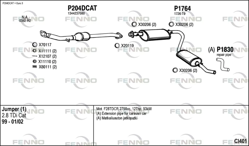 CITROËN JUMPER I autobus (230P) 2.8 HDi - Výfukový systém - kompletní od 9/2000 do 4/2002, 2798 ccm, 94 kW, 128 hp, 8140.43S, autobus