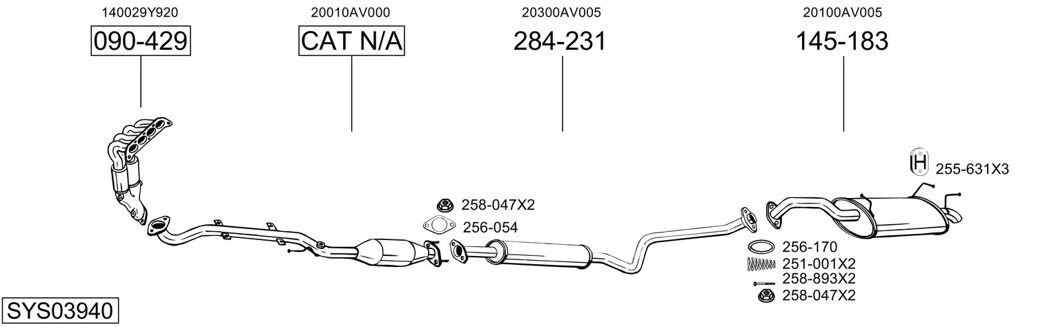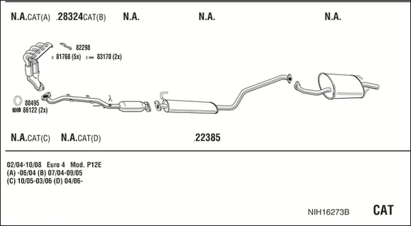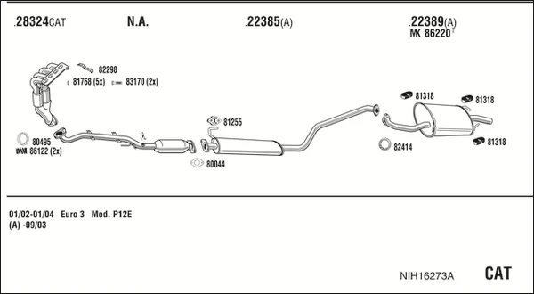 NISSAN PRIMERA (P12) 2.0 - Výfukový systém - kompletní od 3/2002 do 10/2008, 1998 ccm, 103 kW, 140 hp, QR20DE, limuzína