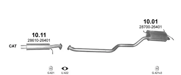 HYUNDAI SANTA FÉ I (SM) 2.0 CRDi - Výfukový systém - kompletní od 8/2001 do 3/2006, 1991 ccm, 83 kW, 113 hp, D4EA, SUV