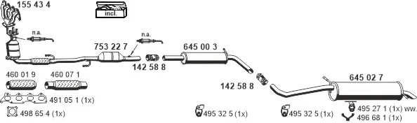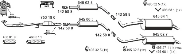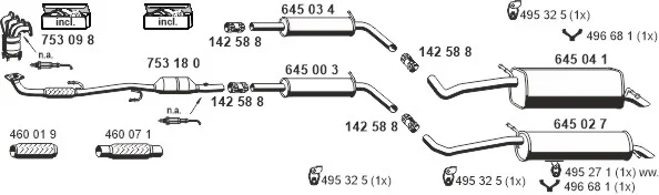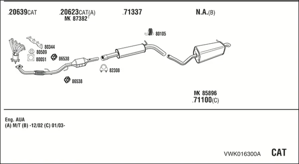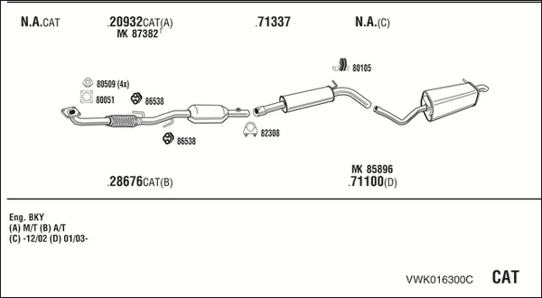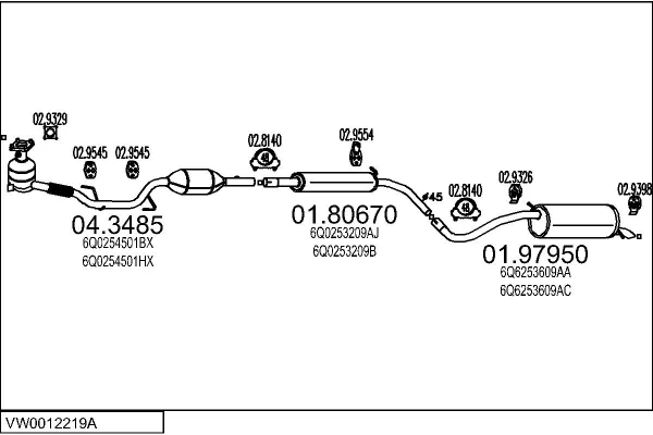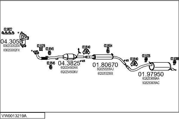 VW POLO IV (9N_, 9A_) 1.4 16V - Výfukový systém - kompletní od 10/2001 do 5/2008, 1390 ccm, 55 kW, 75 hp, AUA, BBY, BKY, Šikmá zadní část