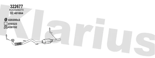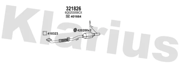 VW POLO IV (9N_, 9A_) 1.4 16V - Výfukový systém - kompletní od 10/2001 do 5/2008, 1390 ccm, 55 kW, 75 hp, AUA, BBY, BKY, Šikmá zadní část