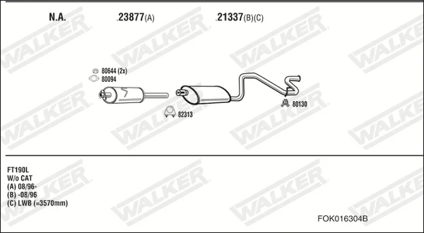 FORD TRANSIT Krabice (E_ _) 2.5 TD (EAS) - Výfukový systém - kompletní od 6/1994 do 3/2000, 2496 ccm, 55 kW, 75 hp, 4HA, 4HD, Krabice