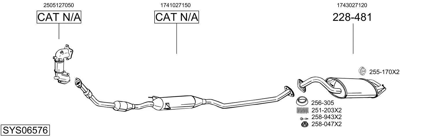 TOYOTA COROLLA (_E12_) 2.0 D-4D (CDE120_, CDE120R) - Výfukový systém - kompletní od 1/2002 do 12/2006, 1995 ccm, 66 kW, 90 hp, 1CD-FTV, Šikmá zadní část