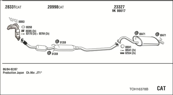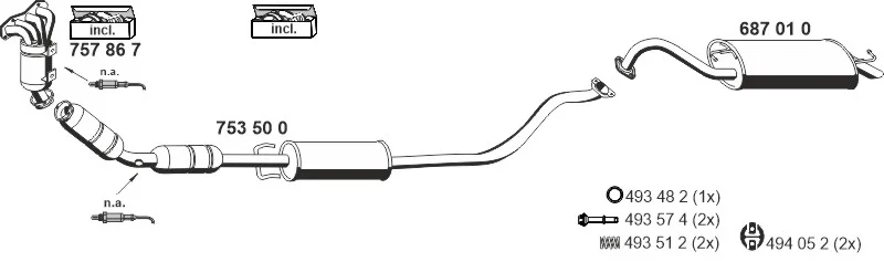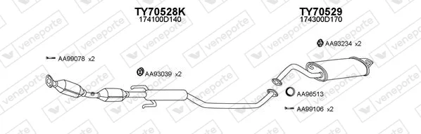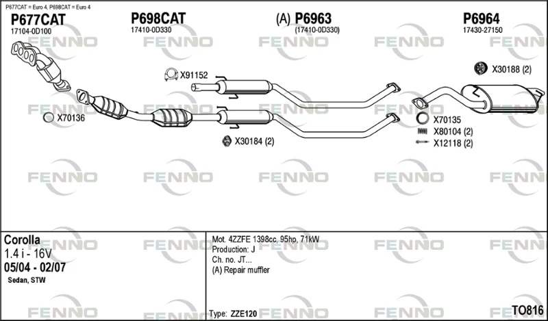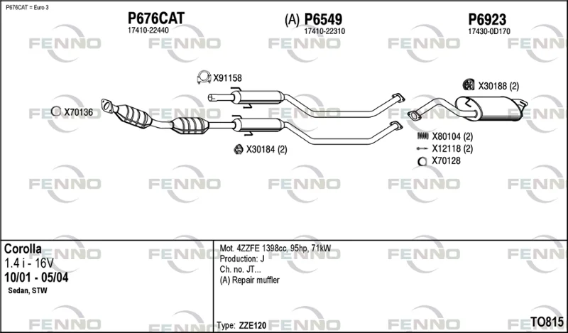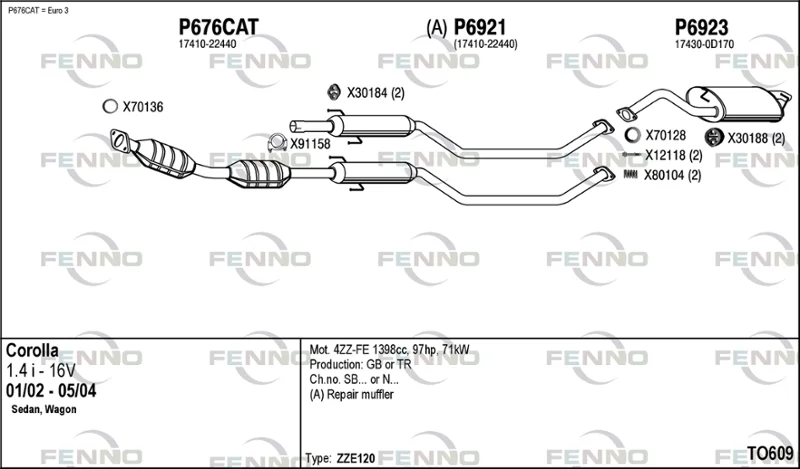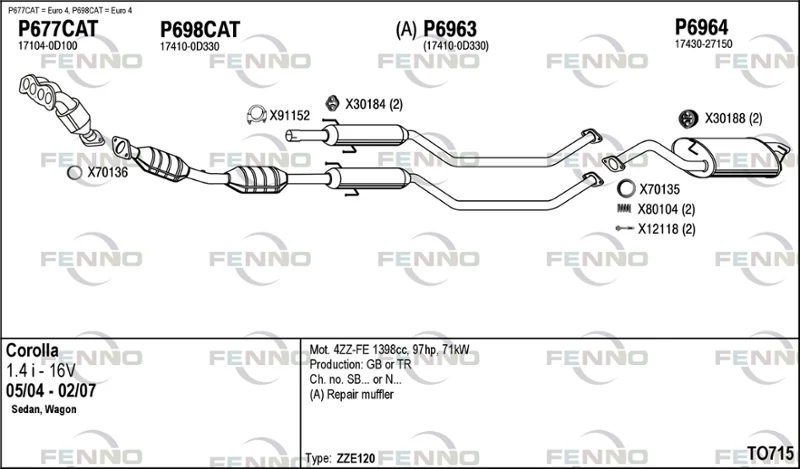 TOYOTA COROLLA kombi (_E12_) 1.4 VVT-i (ZZE120_, ZZE120R) - Výfukový systém - kompletní od 1/2002 do 2/2007, 1398 ccm, 71 kW, 97 hp, 4ZZ-FE, kombi