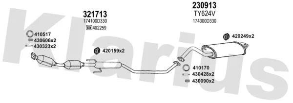 TOYOTA COROLLA kombi (_E12_) 1.4 VVT-i (ZZE120_, ZZE120R) - Výfukový systém - kompletní od 1/2002 do 2/2007, 1398 ccm, 71 kW, 97 hp, 4ZZ-FE, kombi
