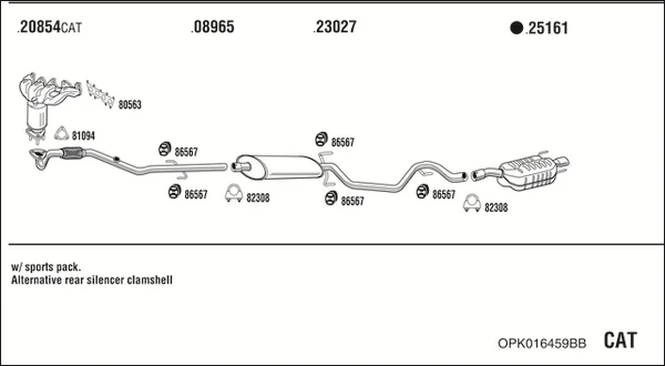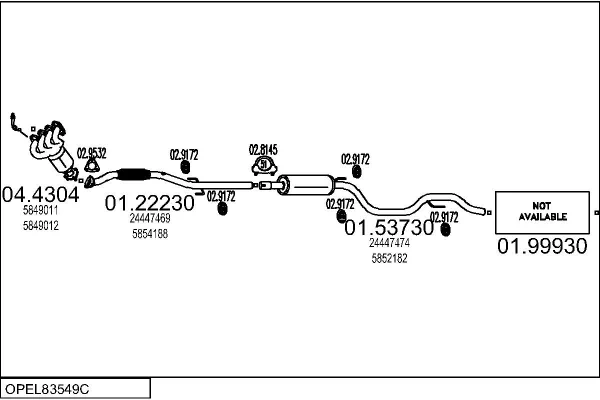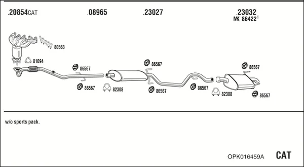 OPEL VECTRA C (Z02) 1.8 16V - Výfukový systém - kompletní od 4/2002 do 9/2008, 1796 ccm, 90 kW, 122 hp, Z 18 XE, limuzína