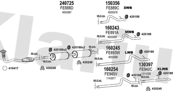FORD TRANSIT autobus (FD_ _, FB_ _, FS_ _, FZ_ _, FC_ _) 2.4 TDE (F_C_, F_B_, F_A_) - Výfukový systém - kompletní od 7/2001 do 5/2006, 2402 ccm, 92 kW, 125 hp, DOFA, autobus