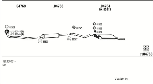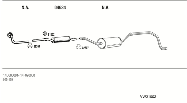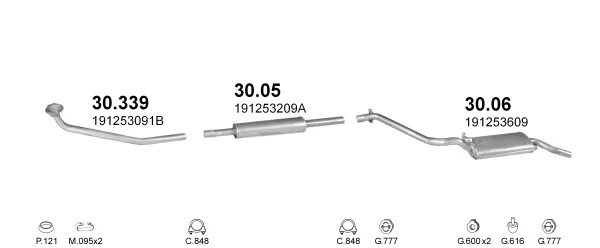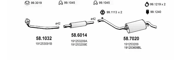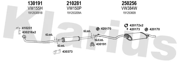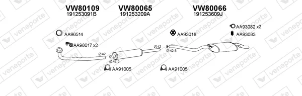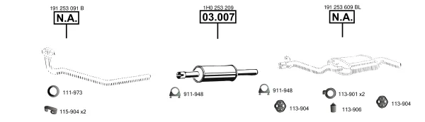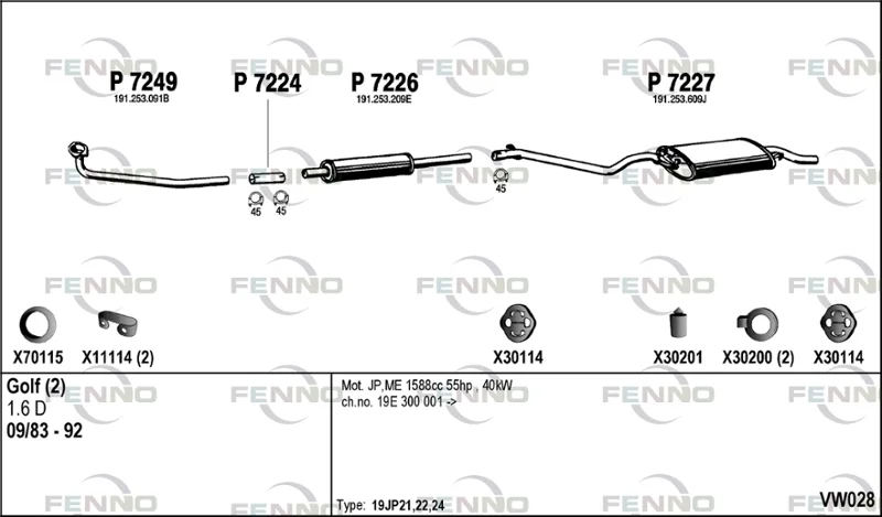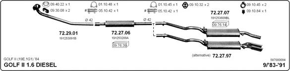VW GOLF II (19E, 1G1) 1.6 D - Výfukový systém - kompletní od 8/1983 do 10/1991, 1588 ccm, 40 kW, 54 hp, JP, ME, Šikmá zadní část